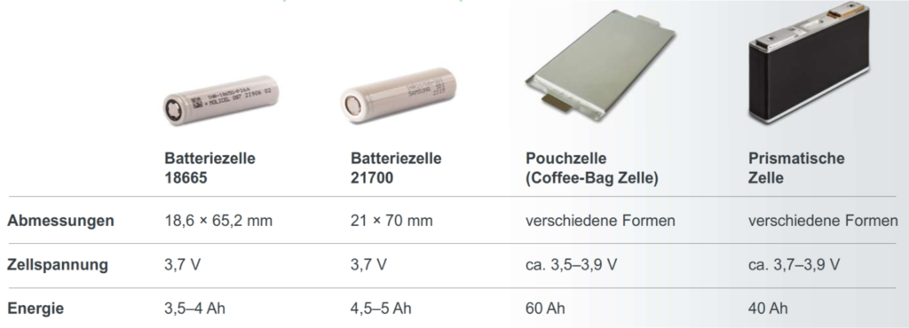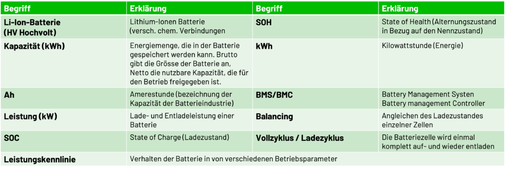 1.2 Batteriewissen Begriffe Batteriearten (Zellenarten) Zusammensetzung einer Li-Ion-Zelle Batterieaufbau Batterieaufbau (Beispiel) Umgang mit Batterien Lebensdauer von Batterien