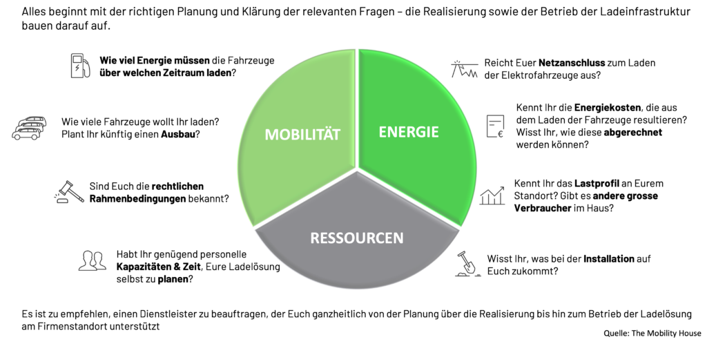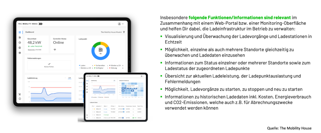 Überlege Dir, welche Erwartungen und Anforderungen Du als Mobilitätsmanager später an den Betrieb der Ladeinfrastruktur hast. So kannst Du diese bereits während der Planungsphase bei der Auswahl des passenden Lade- und Energiemanagementsystems inkl. Monitoring-Funktion einbringen. Bist Du z.B. verantwortlich für die Einsatzbereitschaft von Poolfahrzeugen, ist es für Dich wichtig, umgehend informiert zu werden, wenn es bei einem angesteckten Fahrzeug zu einer Störung bzw. Ladeunterbrüchen kommt.
