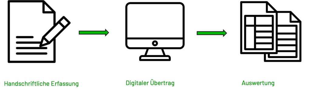 Hier gibt es verschiedene Ansätze die mit mehr oder weniger Aufwand angegangen werden können. Eine Erhebung mit grossem Zeitaufwand ist der Analoge Ansatz.